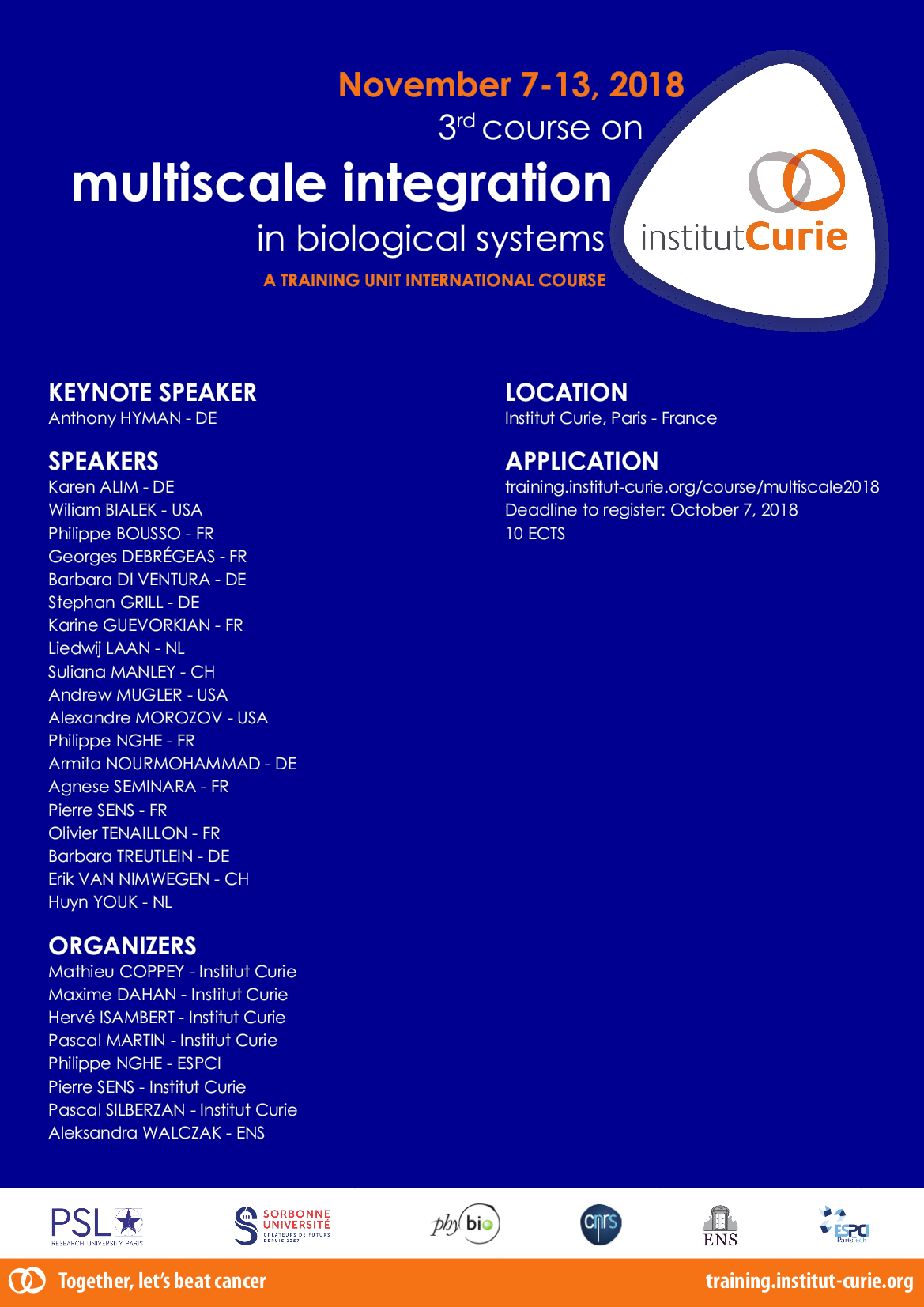 3rd international Course on Multiscale Integration in Biological Systems (November 2018)