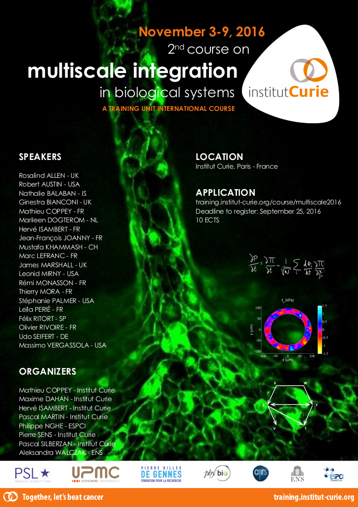 2nd international Course on Multiscale Integration in Biological Systems (November 2016)